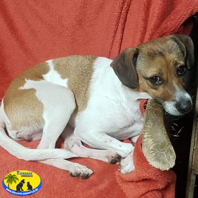 Cookie ist seit dem 18.04.2019 in der Tieroase und wird hier lernen an der Leine zu laufen und eine „normale“ Stubenreinheit zu erlangen.