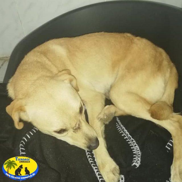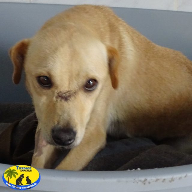 Sie ist noch sehr scheu. Mit anderen Hunden schaut sie immer mal und geht auch mit. Gegenüber Menschen ist sie sehr zurückhaltend und zieht sich ins Körbchen zurück. Aber sie ist dabei sehr freundlich und lässt sich streicheln. Sie ist sehr dünn und muss erst mal gepäppelt werden….
