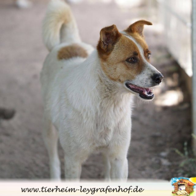 Jette stammt ursprünglich aus Rumänien. Die hübsche Hündin wurde ca. im Dezember 2018 geboren und hat eine ca. Schulterhöhe von 45 cm.