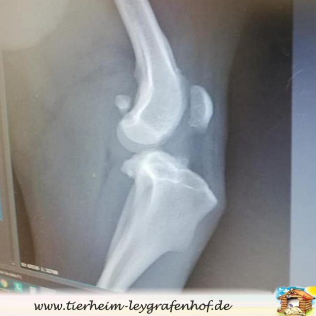 Aus diesem Grunde haben wir uns entschieden mit Nando in die Tierklinik zu gehen. Beim Röntgen des Beinchen wurde festgestellt, das er höchstwahrscheinlich einen Bänderriss hat und es besteht Verdacht auf Arthrose.