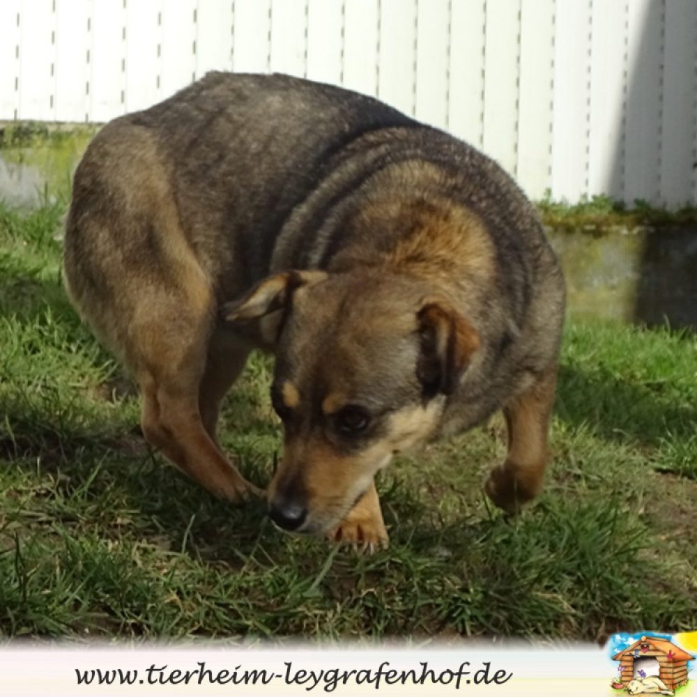 Die kleine Hündin von ca. 30 cm, wurde in der Nähe von einen Sinti / Roma Dorf aufgegriffen . Sie wird auf 2 bis 3 Jahre geschätzt.